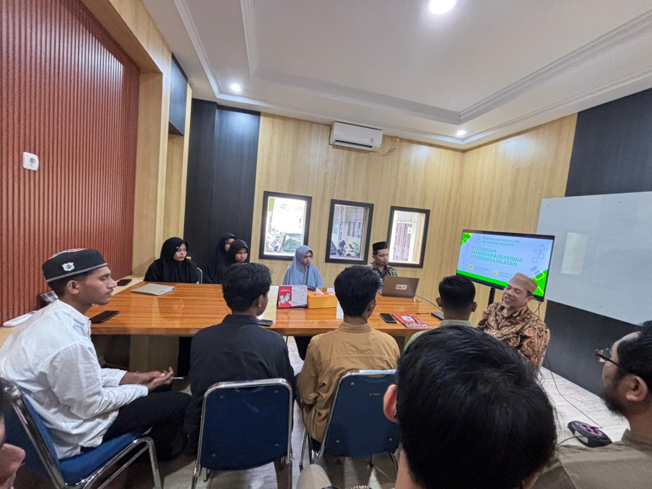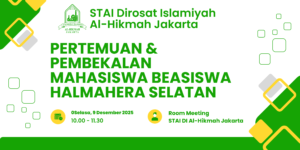 STAI Dirosat Islamiyah Al-Hikmah Jakarta menggelar pertemuan koordinasi dan evaluasi rutin bagi mahasiswa penerima beasiswa asal Halmahera Selatan pada Selasa, 09 Desember 2025. Kegiatan yang berlangsung di Room Meeting Kampus (Perpustakaan) tersebut dilaksanakan mulai pukul 10.00 hingga 11.30 WIB dan dihadiri langsung oleh pimpinan kampus.